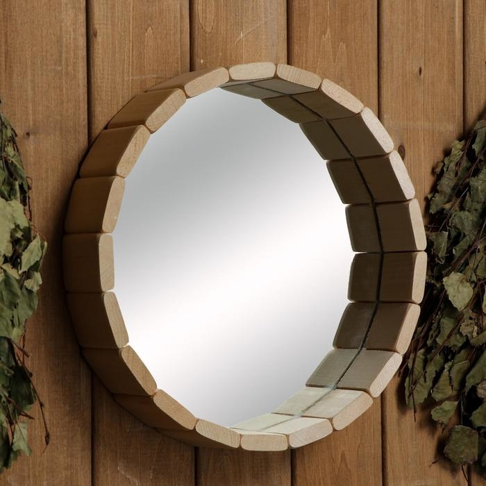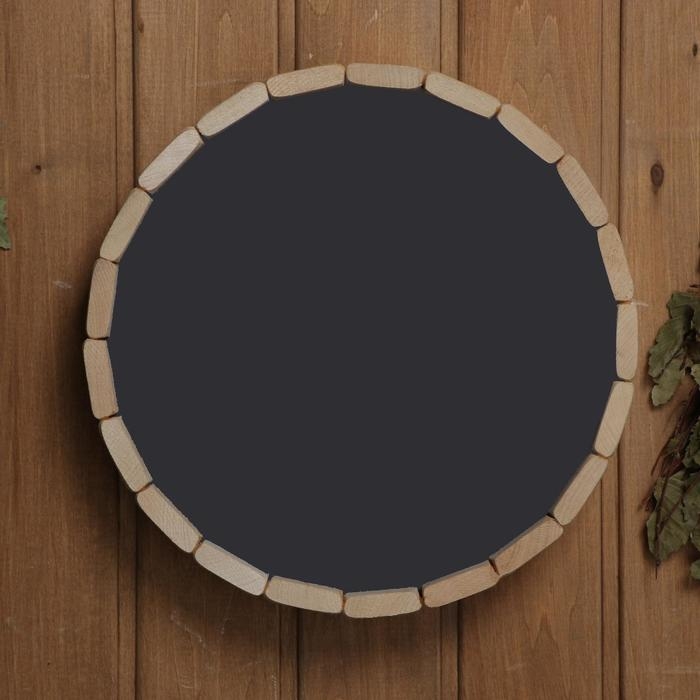 Такое зеркало подойдёт для бани и сауны. Дерево не выделяет вредных веществ при нагревании и подходит для помещений с высокой влажностью.