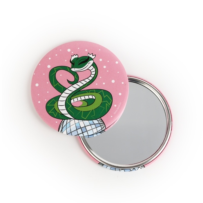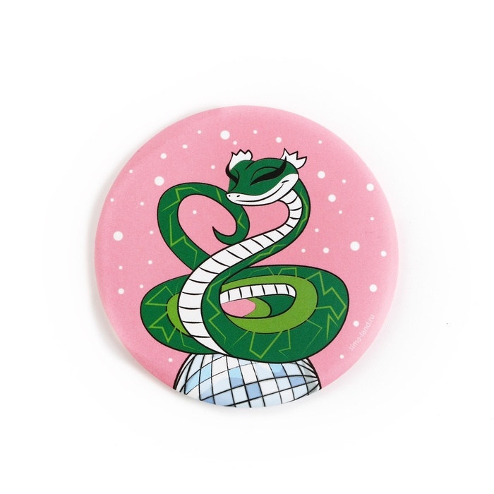 Зеркало карманное новогоднее «Новый год: Зеленая змейка», диам.7 см