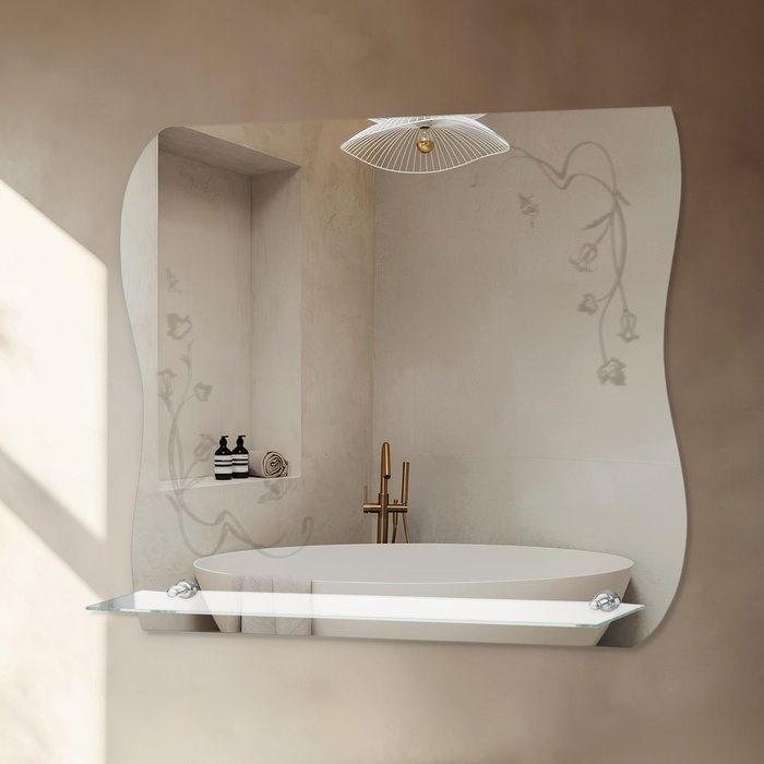 Зеркало, настенное, с пескоструйной графикой, с полочкой, 50х60 см