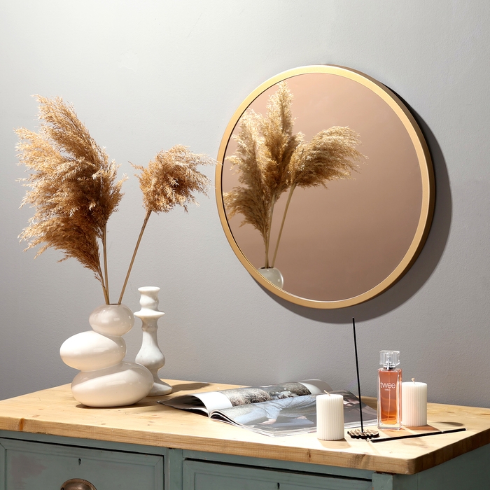 Зеркало настенное в круглом корпусе из металла, D=50, золотой