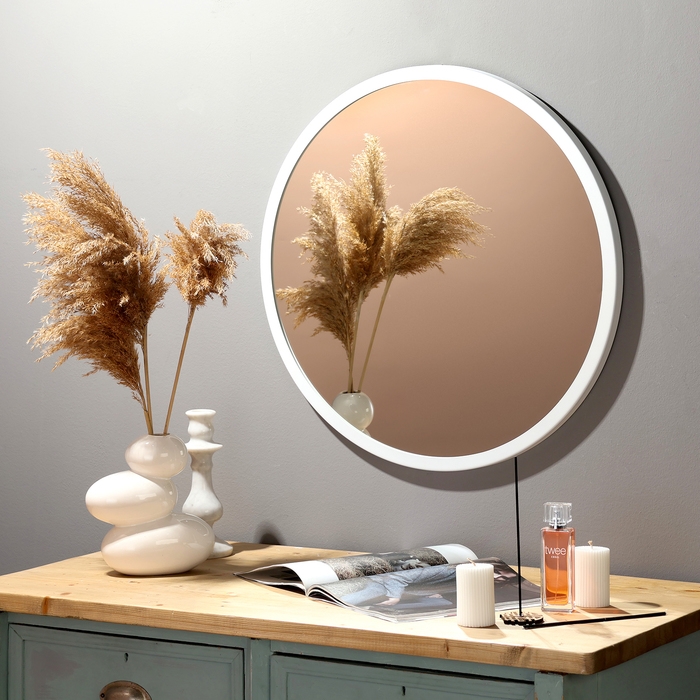 Зеркало настенное в круглом корпусе из металла, D=60, белый Рубин