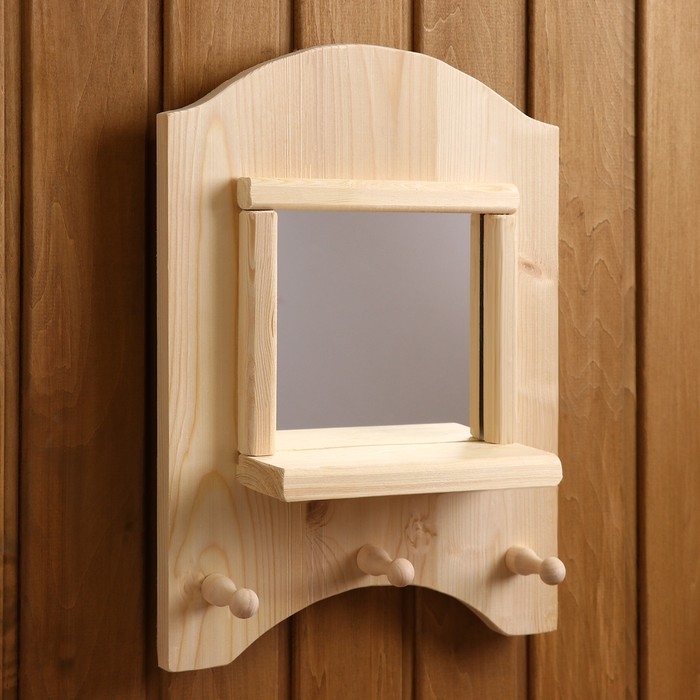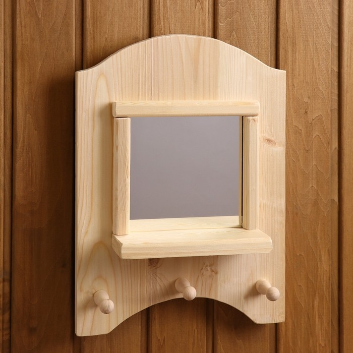 Зеркало "Окошко", 3 крючка, сосна, натуральный, 33×28×10 см
