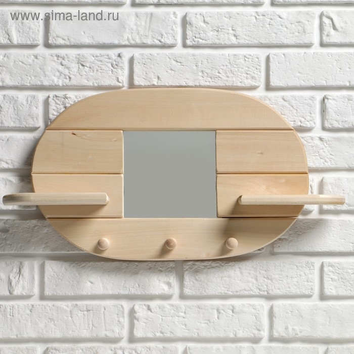Зеркало "Овал", 3 крючка, сосна, натуральный, 54×29×10 см