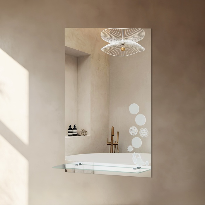 Зеркало с полкой не только выполняет свою главную функцию, но и имеет удобную полку для хранения различных предметов.