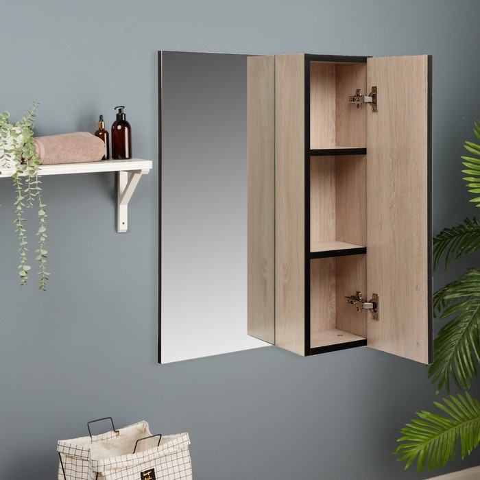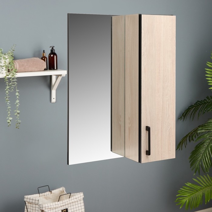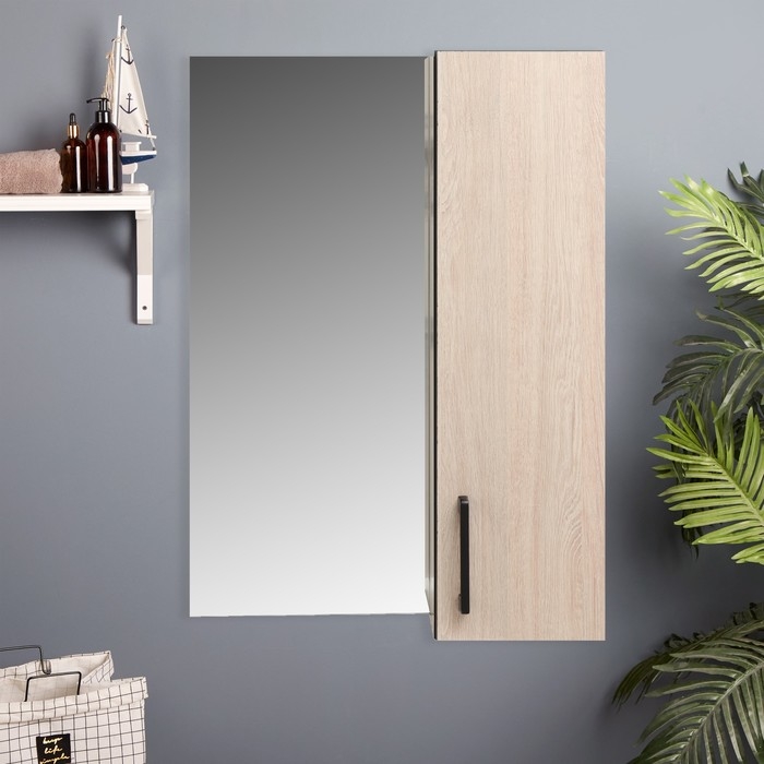 Зеркало-шкаф для ванной комнаты "Сантана 50", Дуб Сантана светлый, 50 х 70 х 16 см