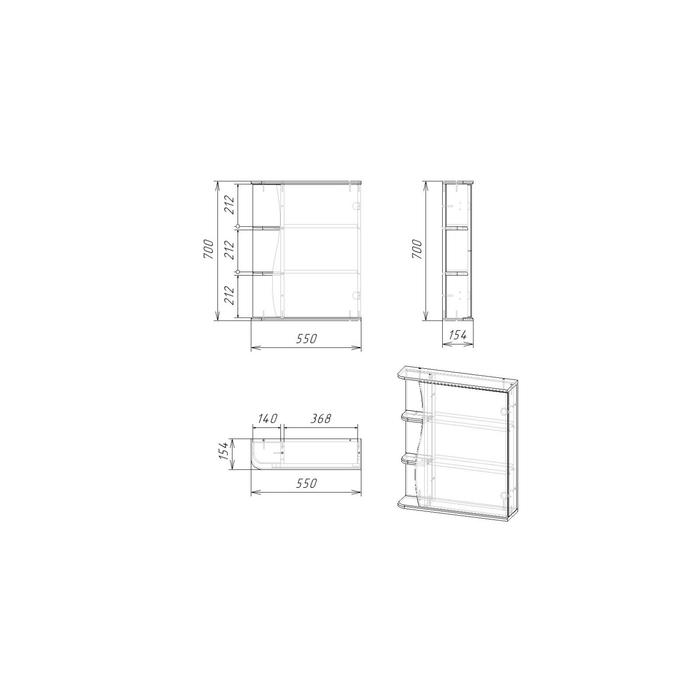 Зеркало-шкаф для ванной комнаты "Тура 5501", с тремя полками, 55 х 15,4 х 70 см