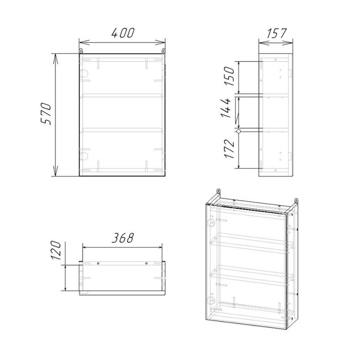 Зеркало-шкаф для ванной комнаты "Венге", 15,7 х 40 х 58 см
