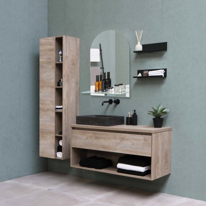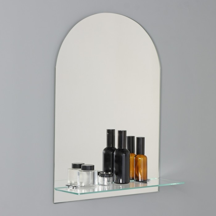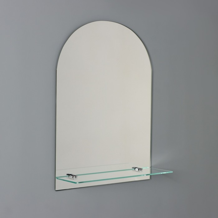 Зеркало в ванную комнату с полкой, полуовальное, 35×50 см