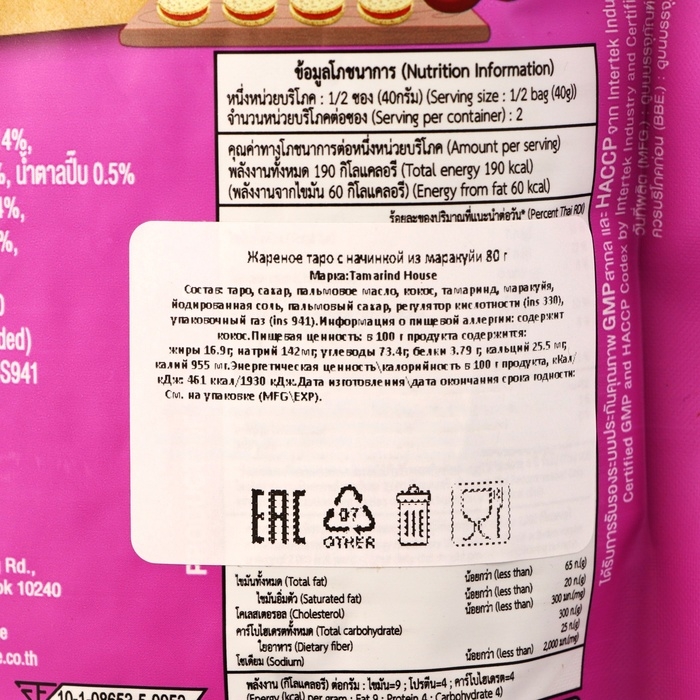Жареное таро с начинкой из маракуйи Tamarind house - это настоящий кулинарный шедевр, который обязательно понравится любителям ярких вкусов и оригинальных сочетаний. Каждый кусочек таро тщательно обжарен до золотистой корочки, что придает ему неповторимую хрустящую текстуру. А вот начинка из сладкой и кислой маракуйи, дополненная нежной тертой мякотью этого экзотического фрукта, добавляет блюду особую изюминку и свежесть.