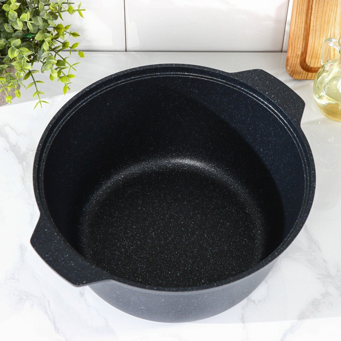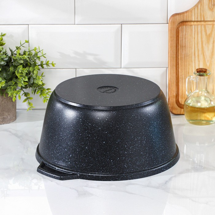 Жаровня, 5 л, d=29 см, стеклянная крышка, антипригарное покрытие, цвет тёмный мрамор