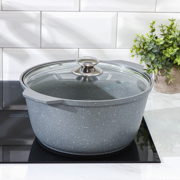 Жаровня, 5 л, стеклянная крышка, цвет светло-серый