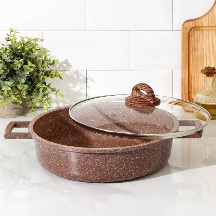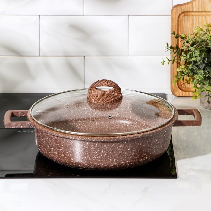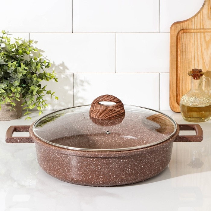 Жаровня Доляна «Брауни», d=28 см, стеклянная крышка, литые ручки, антипригарное покрытие, индукция