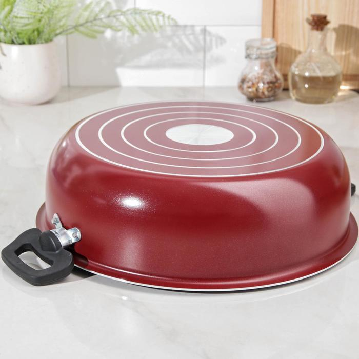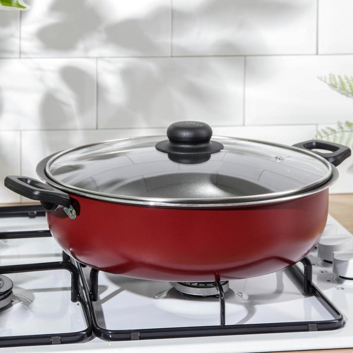 Жаровня-сковорода «Эксперт», 4 л, d=28 см, стеклянная крышка, антипригарное покрытие, цвет бордовый