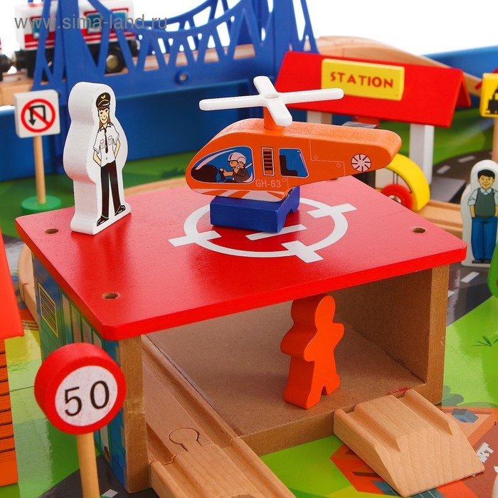 Малыш сможет создавать собственные сюжетные линии. Например осуществит перевозку пассажиров в другой конец города. Автотрек оснащён вертолётной площадкой, которая расширит игровые возможности для ребёнка.