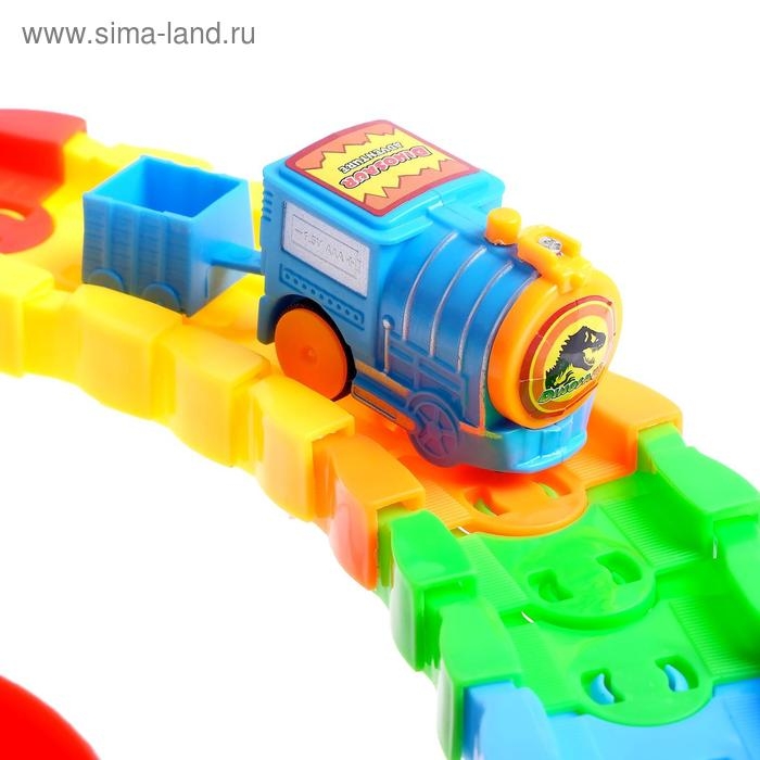 Железная дорога «Эпоха динозавров» привлечёт внимание ярким дизайном и превратит обычную игру в увлекательное путешествие в сказочный мир динозавров и поездов!