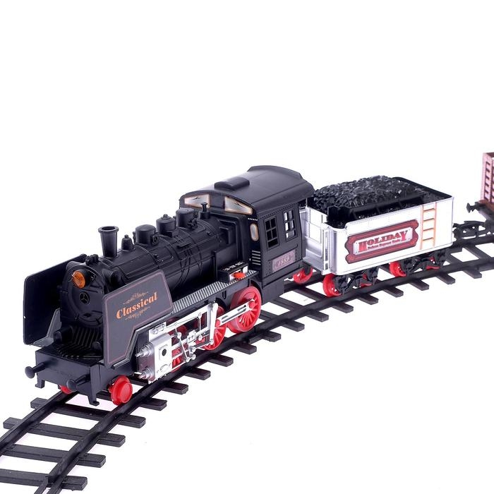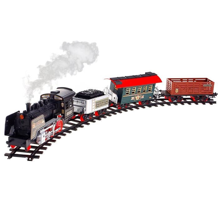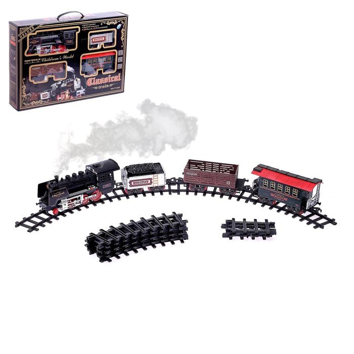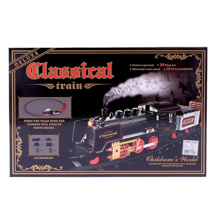 Железная дорога «Классический паровоз», 20 деталей, световые и звуковые эффекты, с дымом, работает от батареек, длина пути 420 см