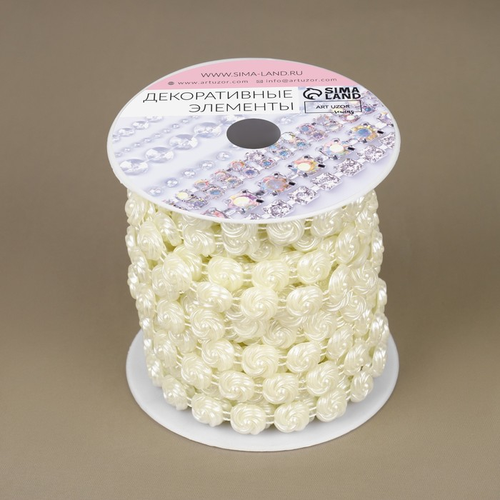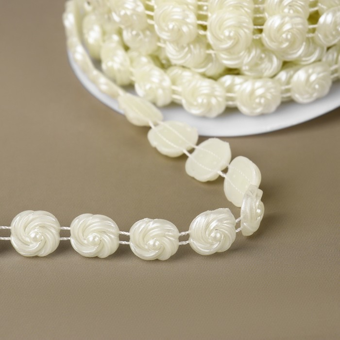 Жемчуг на нитях, плоский, 10 мм, 9 ± 1 м, цвет молочный