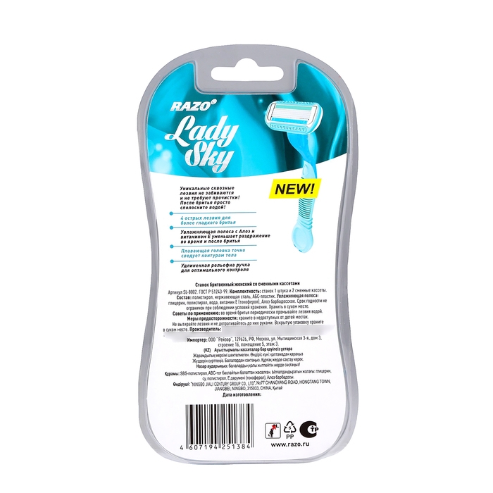 Razo LadySky — это продукт, разработанный с учётом потребностей современных женщин, сочетающий эффективность и комфорт. Станок с 4 лезвиями и двумя сменными кассетами — идеальное решение для тех, кто хочет получить идеально гладкую кожу без раздражения и дискомфорта.