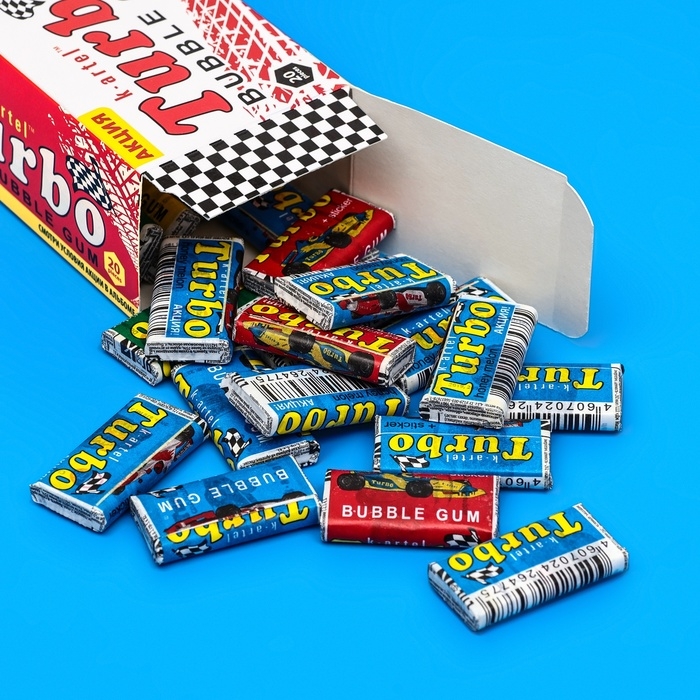 Жевательная резинка "Турбо" является легендой из 90-х и смело стоит в одном ряду с такими легендами, как "Zuko", "Yupi" и жевательной резинкой "Love is". Коллекционная наклейка автомобилем упакована в каждой жвачке. Оригинальный дизайн и ассорти вкусов из яблока, персика и дыни никого не оставят равнодушным. Большая упаковка подойдёт для детского праздника.