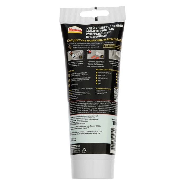 Жидкие гвозди "Момент" Монтаж, суперсильный МВп-70, цвет прозрачный, 185 г