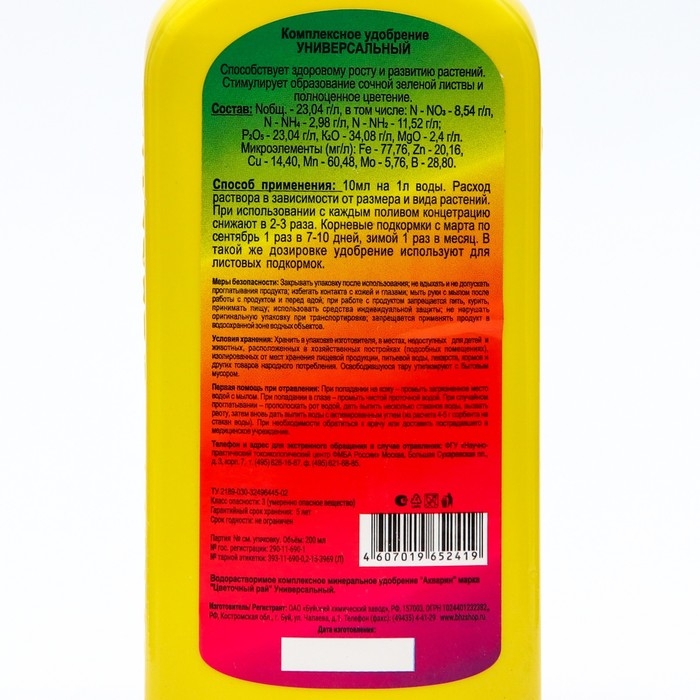 Жидкое комплексное удобрение "Цветочный рай" универсальное, 200 мл