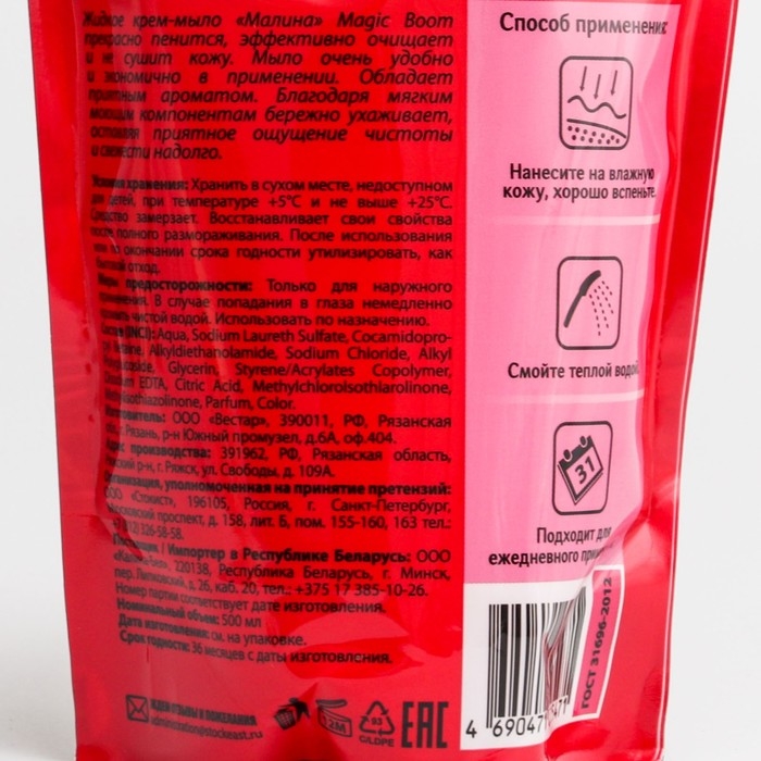Жидкое крем-мыло для рук Magic Boom, малина, дой-пак, 500 мл