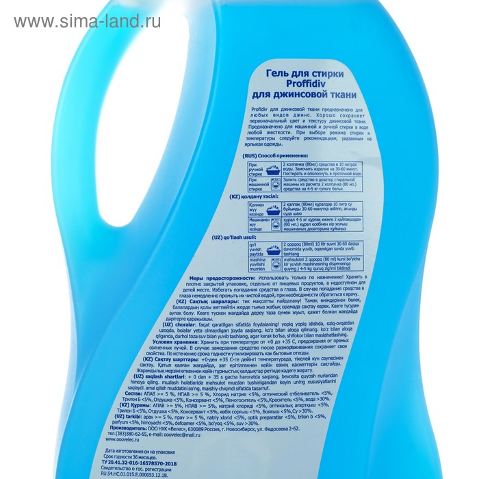 Жидкое средство для стирки Proffidiv, гель, для джинсовой ткани, 2 л