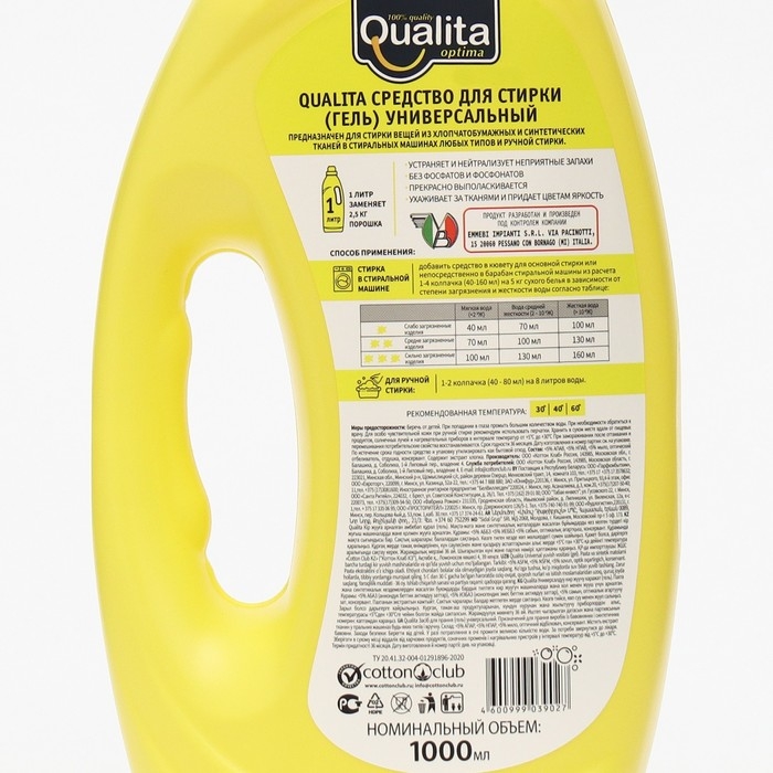 Жидкое средство для стирки Qualita, гель, универсальное, 1 л