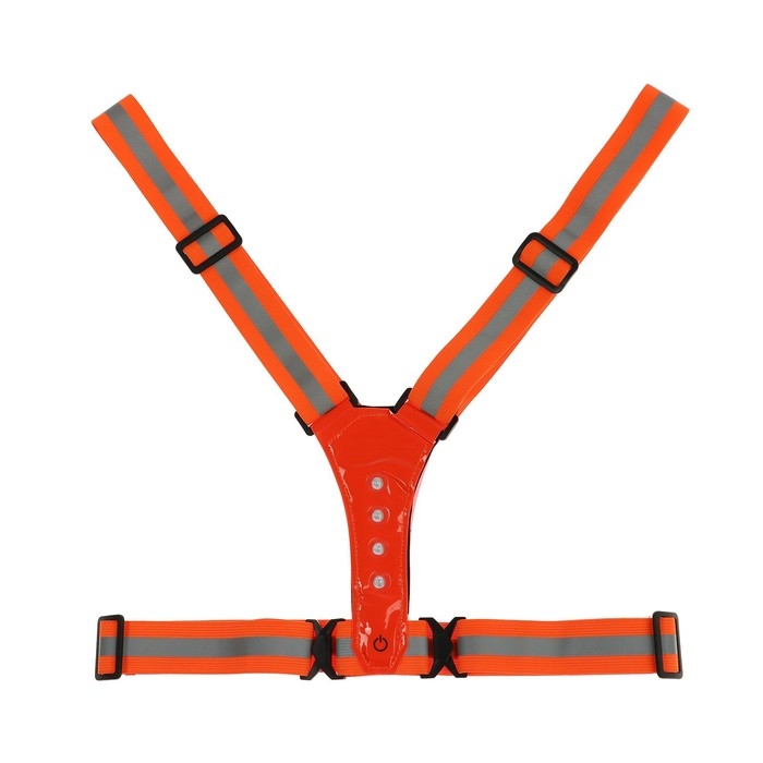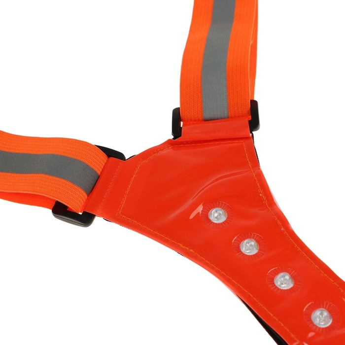 Жилет сигнальный, светоотражающий с регулируемым размером, оранжевый, LED сигнал, 4 режима