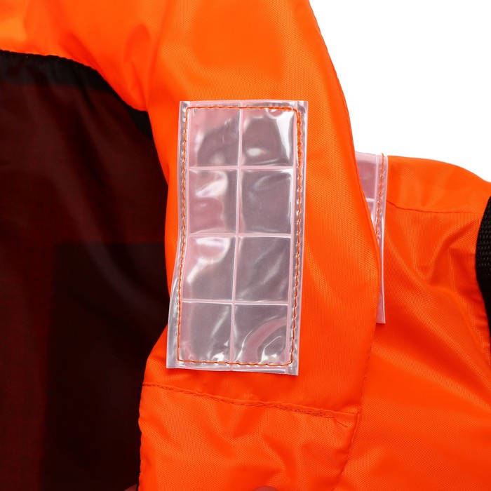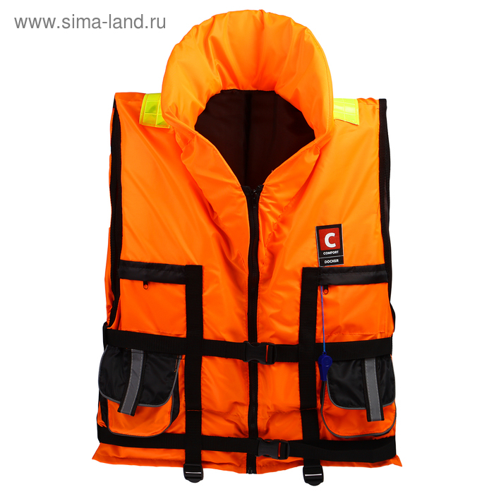 - Жилет оснащён съёмным паховым ремнём, свистком, водостойкими светоотражающими полосами в верхней части спасательного жилета, удерживающим подголовником, ременными стропами с защёлками фастекс, тракторной молнией.