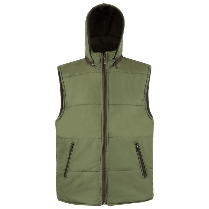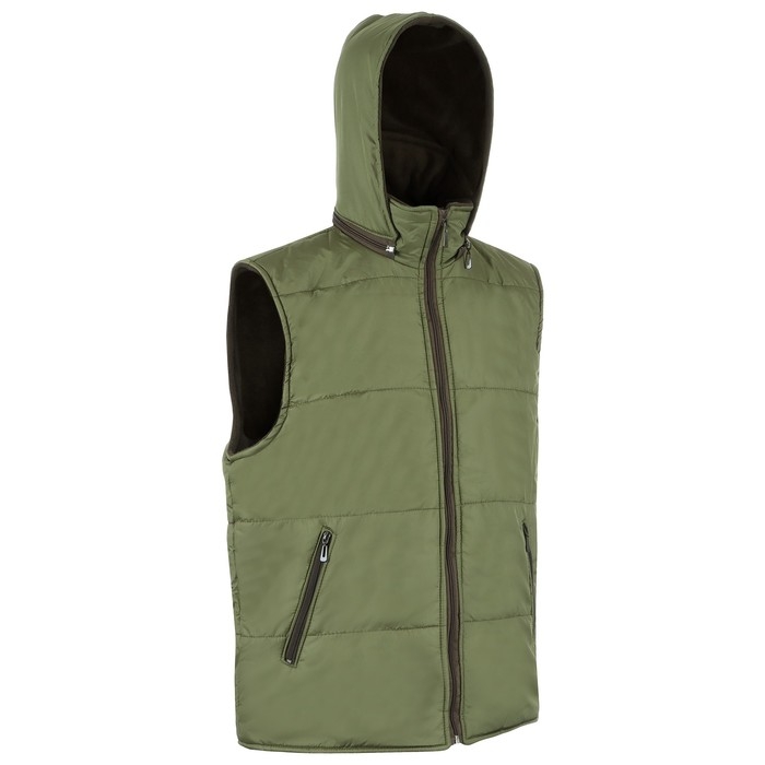 Жилет утепленный на молнии с капюшоном, ткань дюспо, цвет хаки, р 48-50