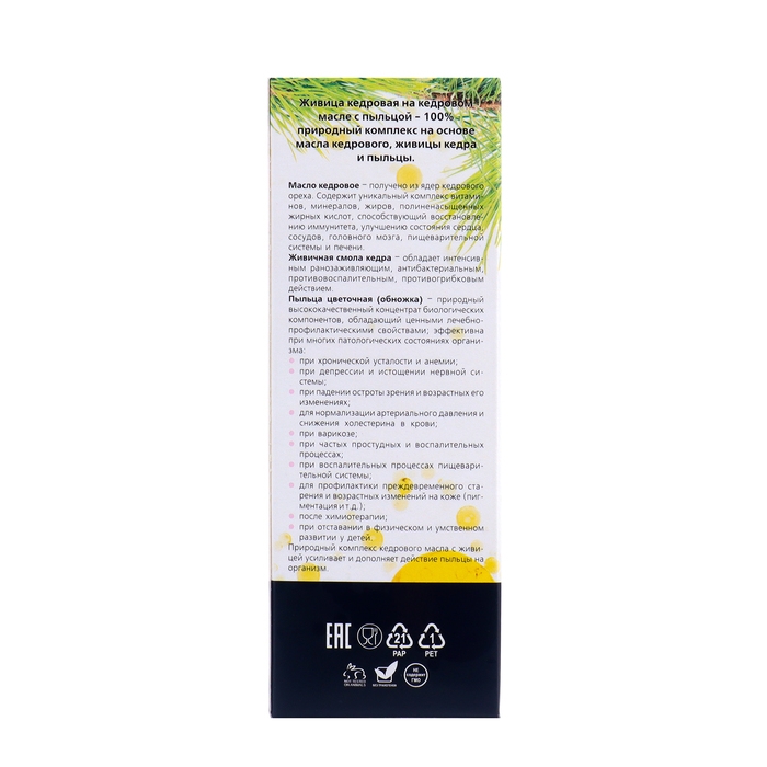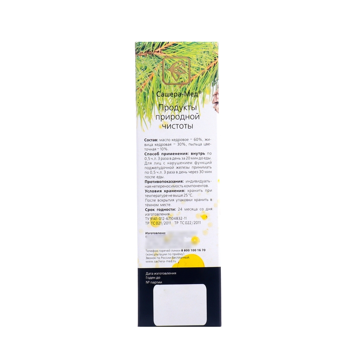 Живица кедровая на кедровом масле с пыльцой "Сашера-Мед" — это натуральный продукт, созданный на основе сибирской лиственницы и обогащенный экстрактом пыльцы. Он представляет собой комбинацию природных ингредиентов, которая может оказывать положительное воздействие на здоровье организма.