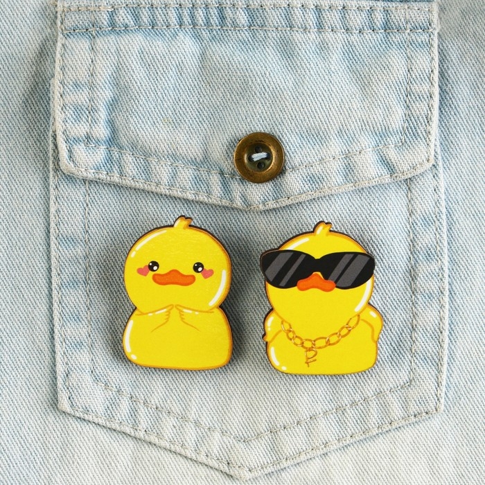 Значки деревянные, неразлучники «Крякнутые», 2 шт., 8 х 12 см.