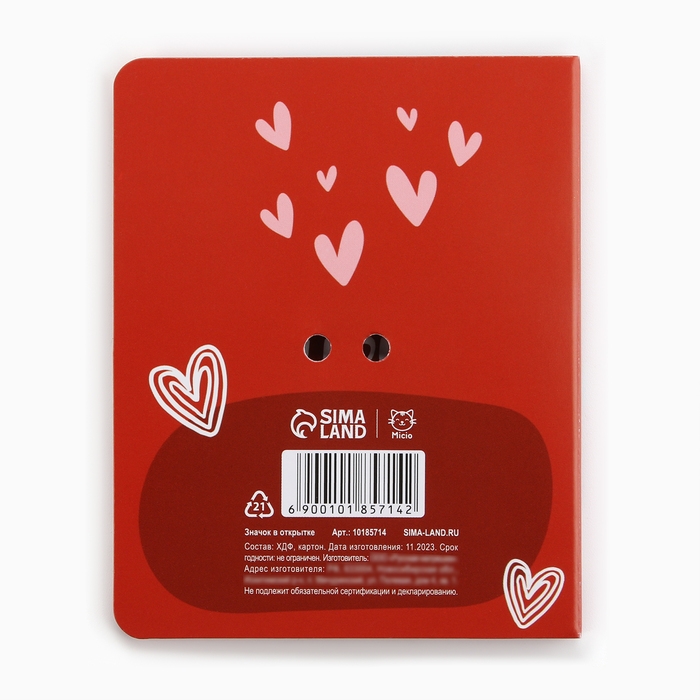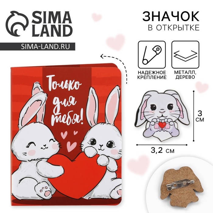 Значок на открытке «Зайчик», 10 х 8 см