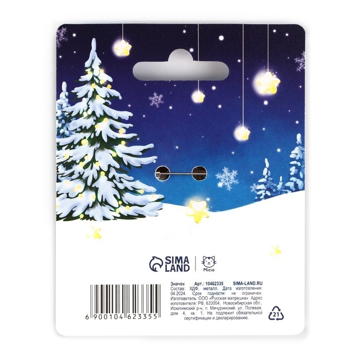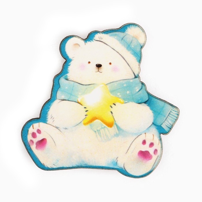 Значок новогодний «Новый год: мечта с мишкой» 3,7 х 4 см