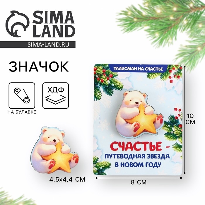 Значок новогодний «Новый год: Путеводная звезда», 4,5 х 4,4 см