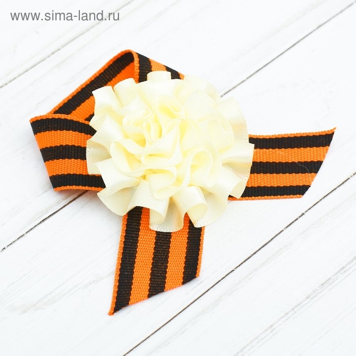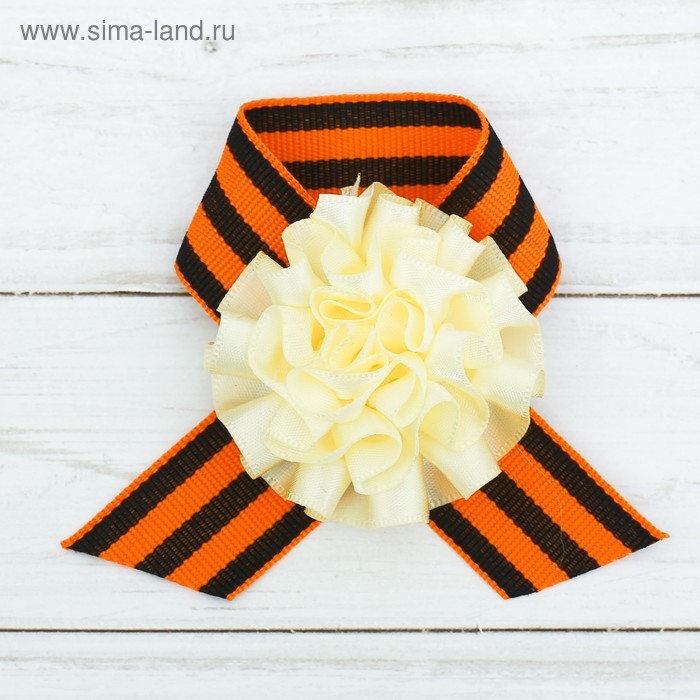Значок с лентой и светло-бежевым цветком на День Победы «9 Мая»