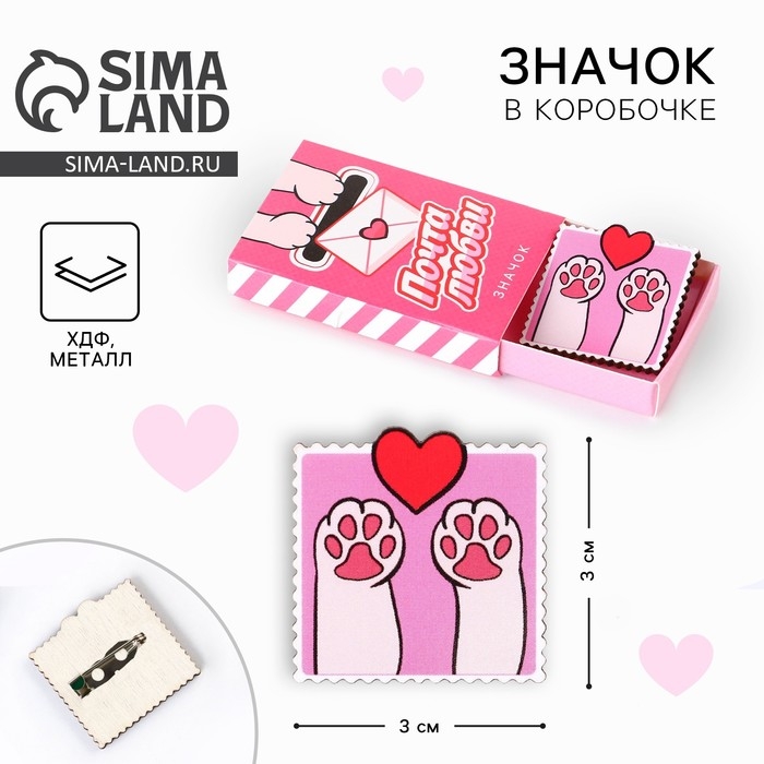 Значок в коробочке «Почта любви», 3 х 3 см