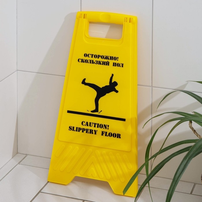Знак «Осторожно! Скользкий пол», 61×30 см, пластик, цвет жёлтый