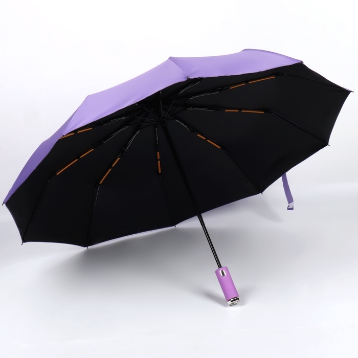 Зонт автоматический «Однотон», с фонарем, 3 сложения, 10 спиц, R = 51/58 см, D = 116 см, цвет сиреневый