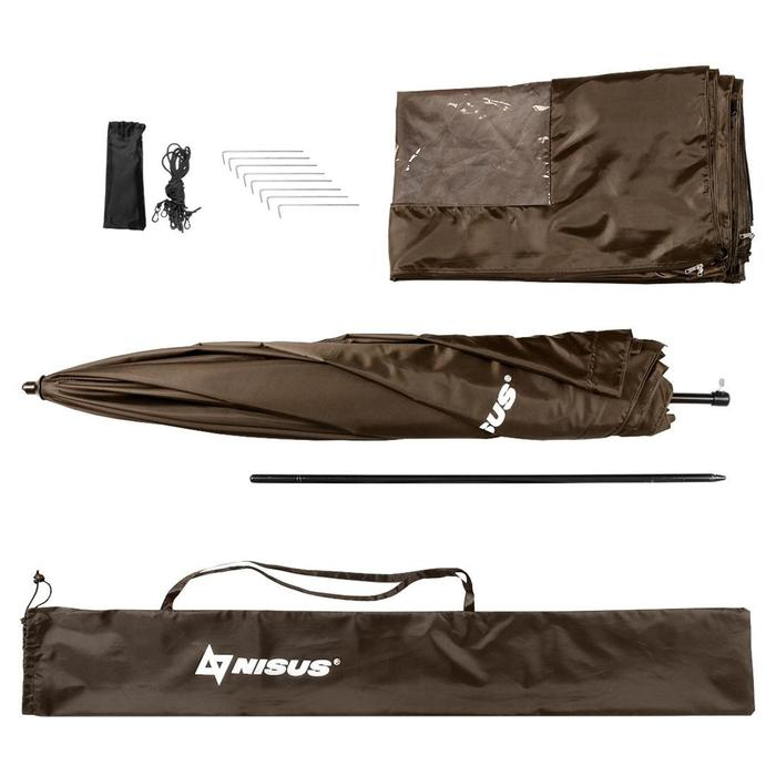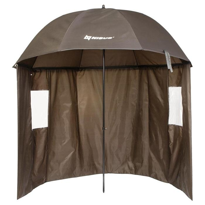 Универсальный зонт из высокопрочного материала Oxford 210D защитит от солнца и укроет при необходимости от ветра и моросящего дождя, благодаря тенту в виде стенки, который пристегивается на молнию. Отлично подойдет для установки на рыболовную платформу (фидерная и карповая ловля). Также будет полезным снаряжением на отдыхе на природе, можно использовать в качестве тента.