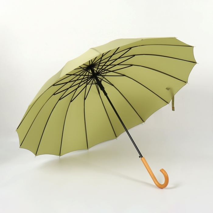Зонт - трость полуавтоматический «Пастель», 16 спиц, R = 52/60 см, D = 120 см, цвет зелёный