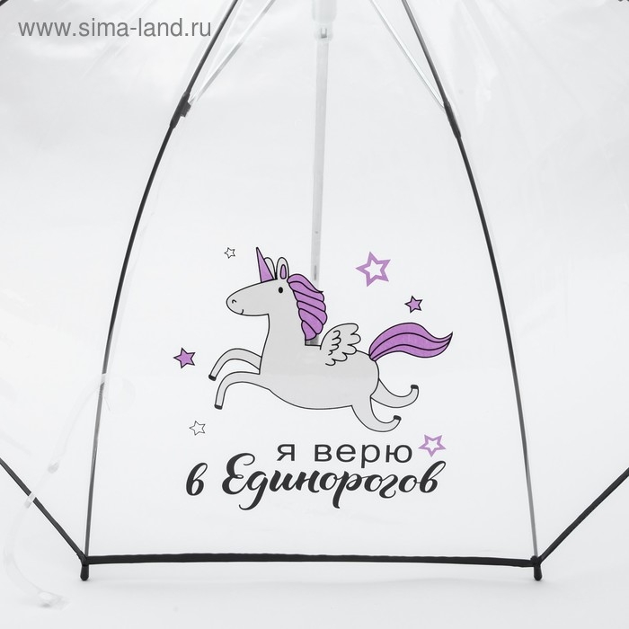 Зонт женский купол "Я верю в единорогов", 8 спиц, d = 88 см, прозрачный