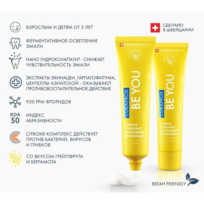 Зубная паста Curaprox BE YOU "Восходящая звезда", желтая, 60 мл
