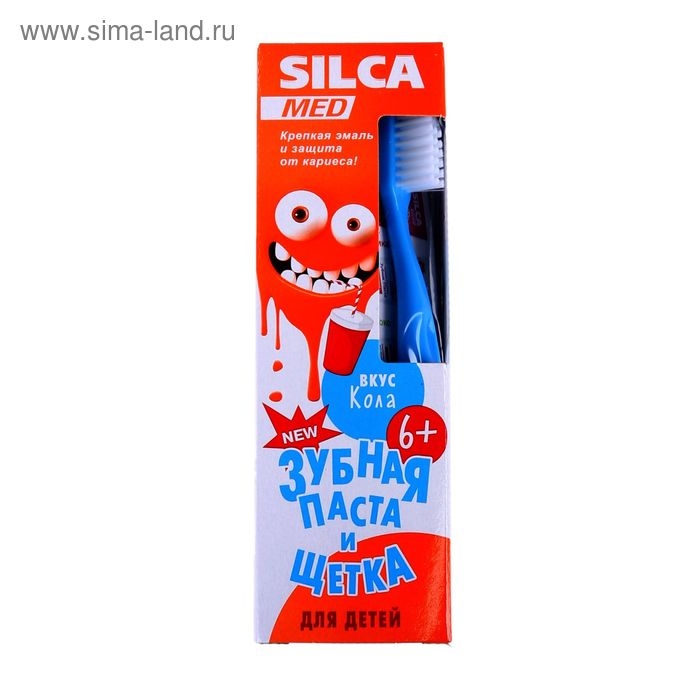 Зубная паста Silcamed со вкусом Колы, 65 г + зубная щетка 1 шт., набор