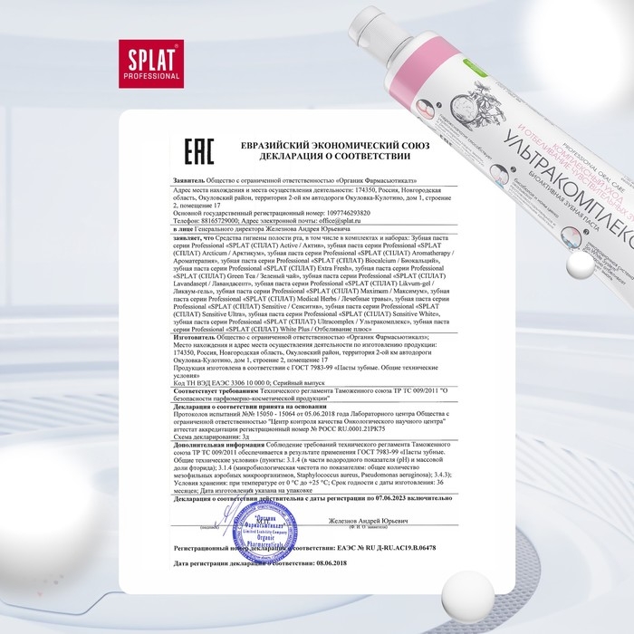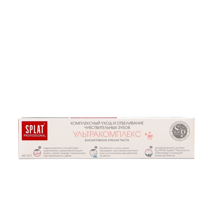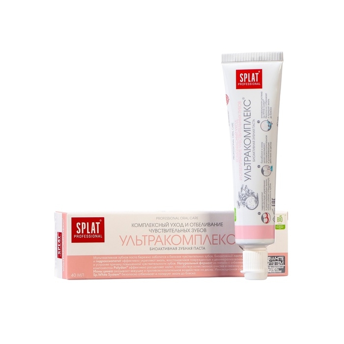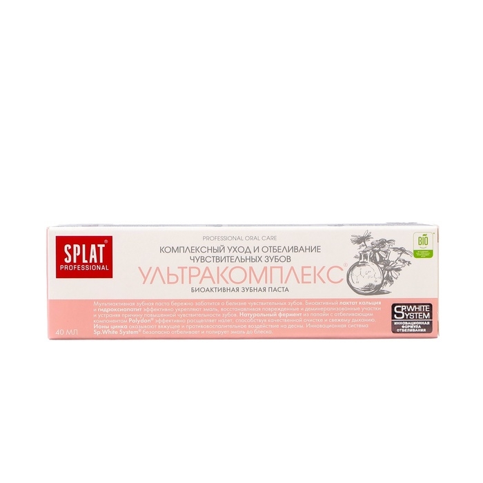 Паста Splat Professional Compact «Ультракомплекс» бережно заботится о белизне чувствительных зубов и здоровье дёсен, а также прекрасно освежает дыхание.